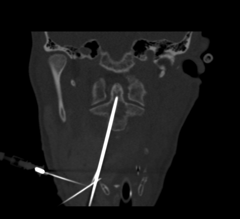 L’équipe de radiologie interventionnelle du CHU de Clermont-Ferrand a réalisé une première en Auvergne : une ostéosynthèse percutanée de la dent de C2 chez une patiente atteinte de cancer, présentant une lésion osseuse à haut risque de fracture.