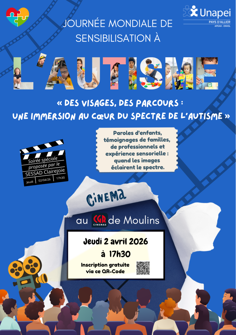 02/04/26 Journée de l'autisme Moulins Comprendre l'autisme C'est quoi l'autisme ? Je m'interroge ? Quelles évaluations ? Quel accompagnement ? Je me forme Pour aller plus loin Le CRA en Auvergne Présentation CRA Auvergne et son réseau Services proposés Centre de documentation L'équipe Nos engagements Nous suivre Diagnostic en Auvergne Qui solliciter ? Accompagnement en Auvergne Associations Structures spécifiques et Equipes Mobiles Autisme MDPH Faciliter le quotidien La maison L'école Les loisirs La santé La vie affective La communication L'accès au travail L'accès au logement Le répit Pour les professionnels Diagnostic au CRA Réseaux professionnels Formations Actualités Du CRA En Auvergne Nationales et Internationales Autres partager imprimer