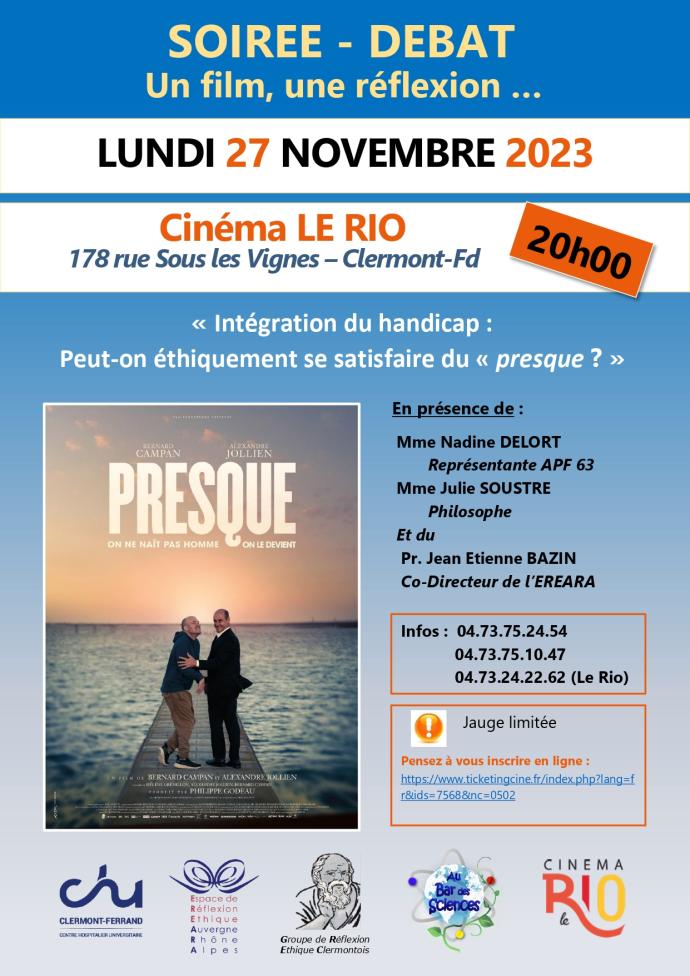 … et le Groupe de Réflexion Ethique Clermontois GREC en collaboration avec lAssociation Le Bar des Sciences et le Cinéma Le Rio ont le plaisir de vous convier à une soirée … Étienne Bazin CoDirecteur EREARA … Au cinéma Le Rio … Inscription à la soiréedébat … Sinscrire … L’Espace de Réflexion …