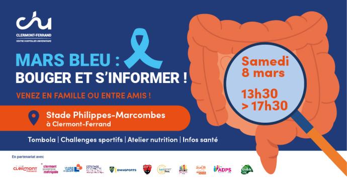 … Envoyer × Prévention Samedi … 08 Mar … Mars Bleu bouger et sinformer au Stade PhilippeMarcombes … partager imprimer Dans … transforme en un … véritable centre dactivités pour toute la famille … avec des animations sportives des ateliers … Des … animations sportives … avec l ASM Omnisports l ASPTT Clermont et l association Sports féminins and Co Un … …