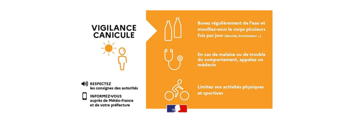 … bons réflèxes … Publié le 29 juillet 2024 partager imprimer La canicule revient cette année et MétéoFrance place le … la canicule … Les effets de la chaleur … Crampes fatigue inhabituelle maux de tête fièvre > 38°C vertiges et nausées propos incohérents … Si vous voyez quelquun victime dun malaise …